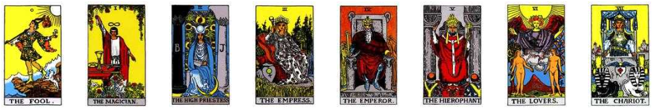메이저 아르카나는 근본적 인간 존재의 원형을 시사하는 22장의 카드로 이루어져 있습니다.