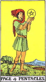 펜타클 시종은 자신이 세운 계획을 하나씩 실천해 나갈 것이다. 카드 그림의 배경이 암시하듯 그의 잠재력은 풍부하다. 신중하지만 호기심을 가지고 배우면서 나아갈 것이다.