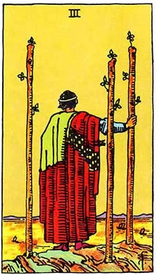 완드 2에 있던 계획이 발을 떼었다. 이제 나아가기만 하면 되는 것이다. 드넓은 대양같은 원대한 꿈을 실현할 구체적인 계획은 만들어졌고 필요한 것도 갖추었다. 완드3 카드의 주제는 목표에 집중하라는 것이다.